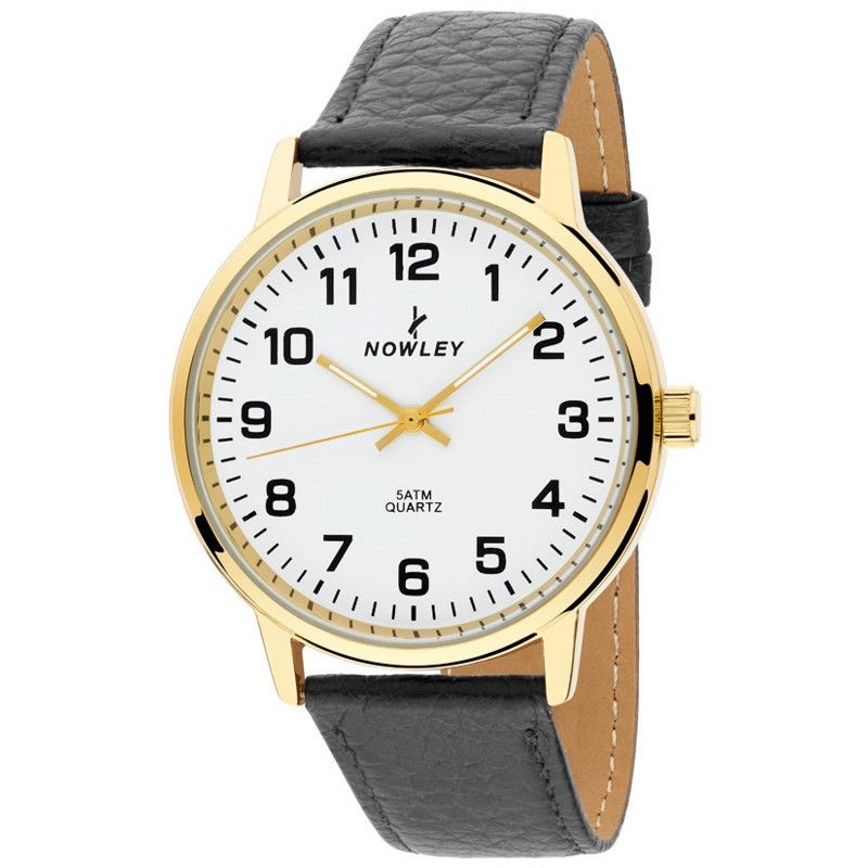 Ανδρικό ρολόι Nowley 8-5540-0-C1 Μαύρο Δερμάτινο. Κασετίνα από χρυσό χάλυβα 40mm. Μαύρο δερμάτινο λουράκι. Λευκό καντράν και χρυσά δείκτες. Χαλαζίας. Υποβρύχιο 50μ. 3 χρόνια εγγύηση. Κωδ. 8-5540-0-C1