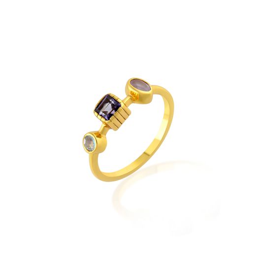 Anillo Plata Dorada ANM0182DOVA18 Triple Piedra Mineral