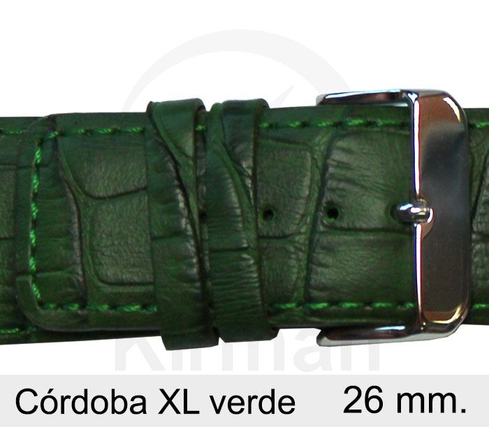 Correa Reloj Piel 26x80/120mm 141000V Córdoba XL Verde Cierre Hebilla. Correa de reloj fabricada en piel. Diseńo de Córdoba XL verde cierre de hebilla. Medida 26x80/120mm. Producto de excelente calidad, con garantía contrastada que asegura su fiabilidad y durabilidad. Ref 141000V