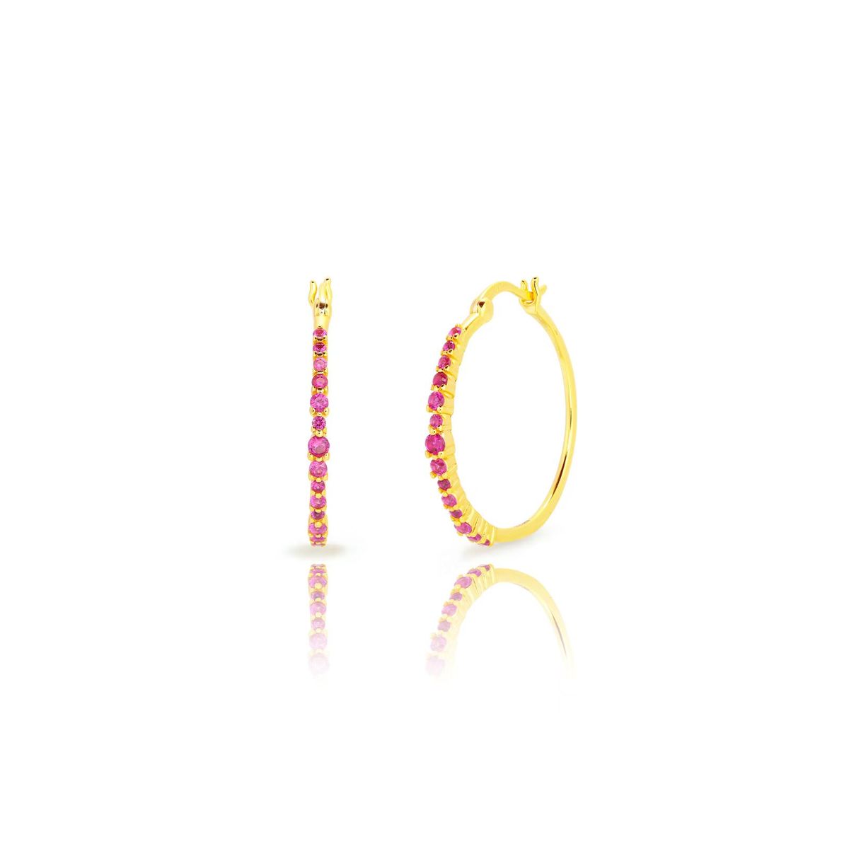 Pendientes Plata Dorada 24,5mm PEZ1608DOZR Aro Circonitas Rubí