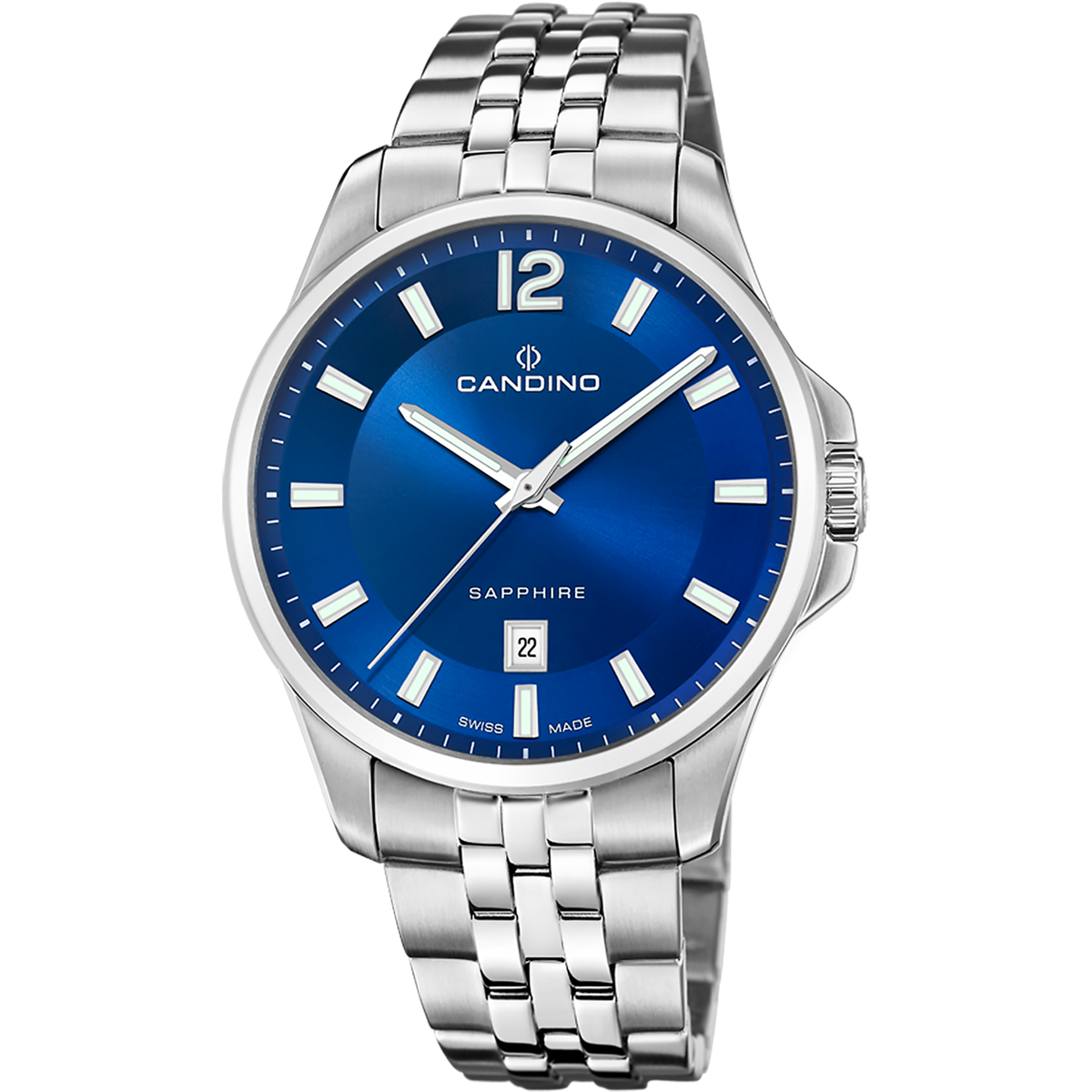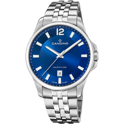 Reloj Candino Hombre C4764/2 Acero Analógico. Caja de acero de 42mm de diámetro. Bisel plateado. Brazalete de acero inoxidable plateado. Cierre desplegable. Esfera azul. Multifunción, calendario. Cristal zafiro. Movimiento quartz. Swiss Made. Sumergible 50m. Peso 150gr. 3 años de garantía. Ref C4764/2
