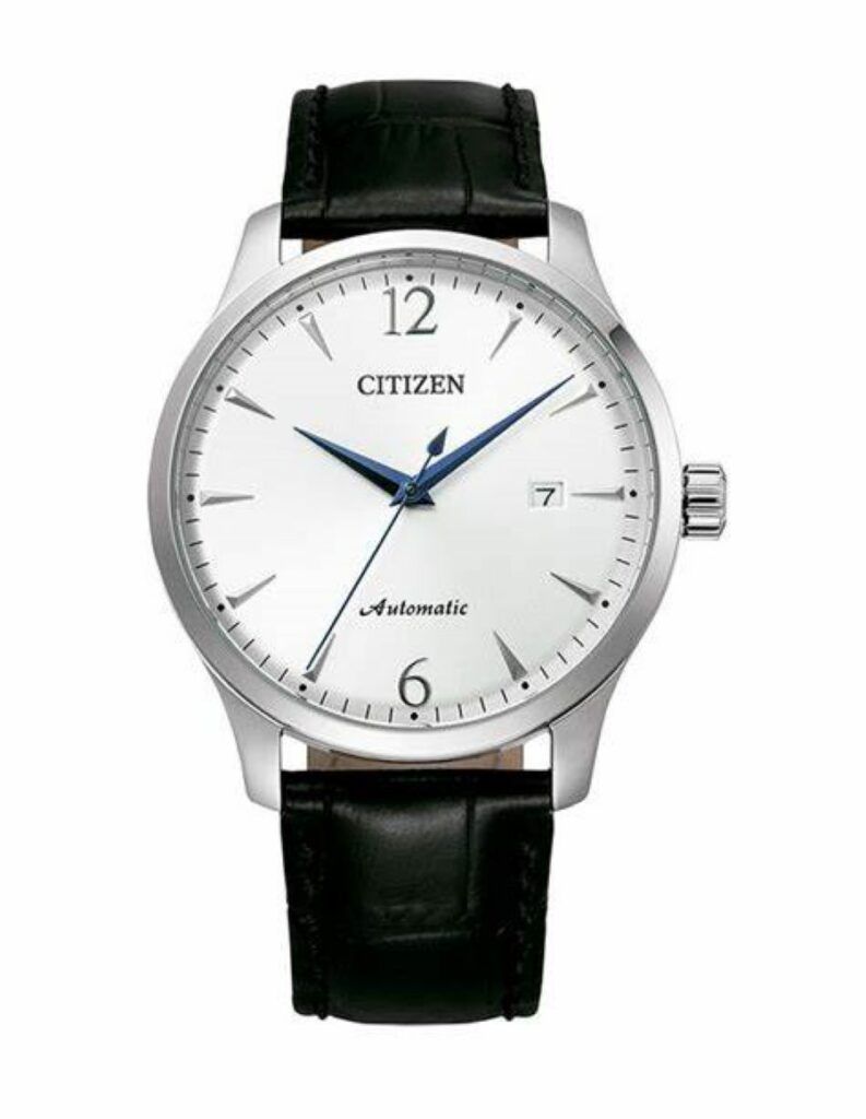 Reloj Citizen Hombre NJ0110-18A Acero Piel Negra Automático 8210 Analógico Plateado Bicolor Blanco. Caja de acero inoxidable plateada de 40mm de diámetro. Bisel plateado. Correa de piel negra. Cierre hebilla. Esfera blanca. Cristal mineral. Peso: 129gr. Movimiento Automático 8210. Calendario. Sumergible 50m. 3 años de garantía. Ref NJ0110-18A