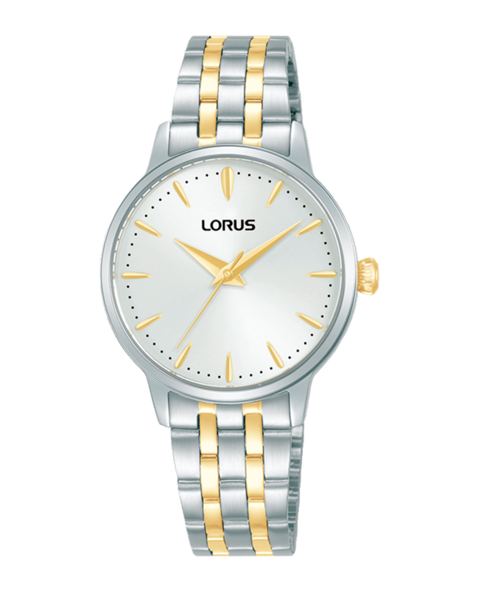Reloj Lorus Mujer RG321XX9 Acero Bicolor Dorado. Caja de Acero Bicolor Dorado de 30mm. Brazalete de Acero Bicolor Dorado. Cierre desplegable. Esfera plateada. Cristal mineral. Movimiento quartz. Sumergible 50m. 3 ańos de garantía. Ref RG321XX9