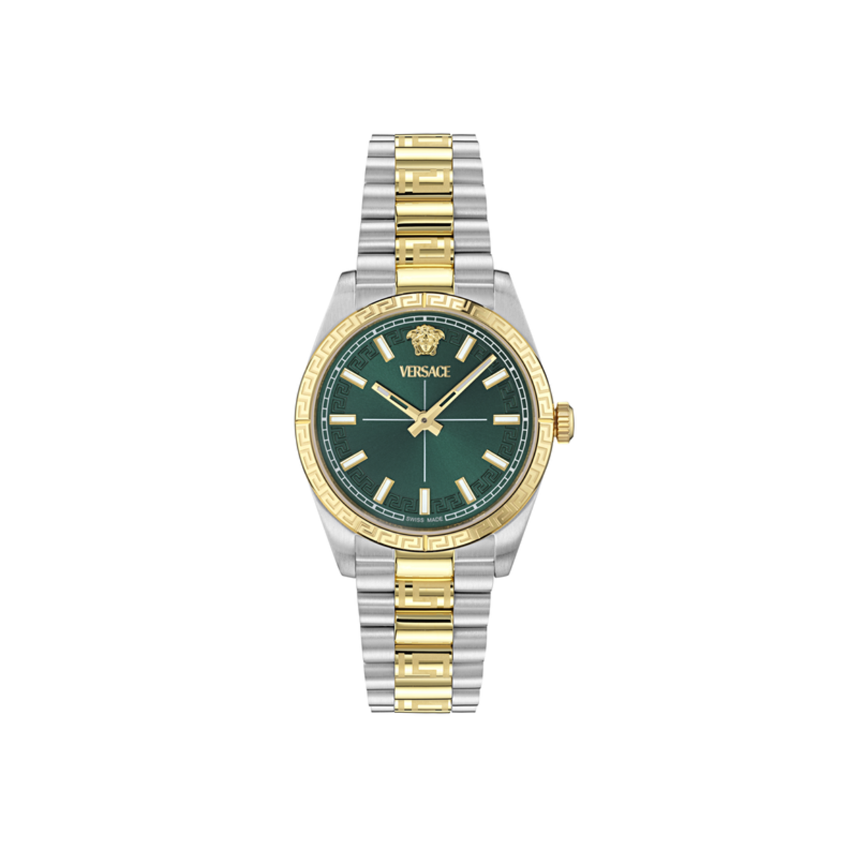 Reloj Versace Mujer VE0E00425 Acero Bicolor Dorado Millenyim. Caja de Acero Bicolor Dorado de 32mm. Brazalete de Acero Bicolor Dorado. Cierre desplegable. Esfera verde medusa dorada. Cristal zafiro. Movimiento quartz Suizo. Sumergible 30m. 3 ańos de garantía. Ref VE0E00425