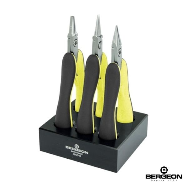Set Alicate Acero Bergeon 20139 (3) Alicates lisos+Base De Plástico