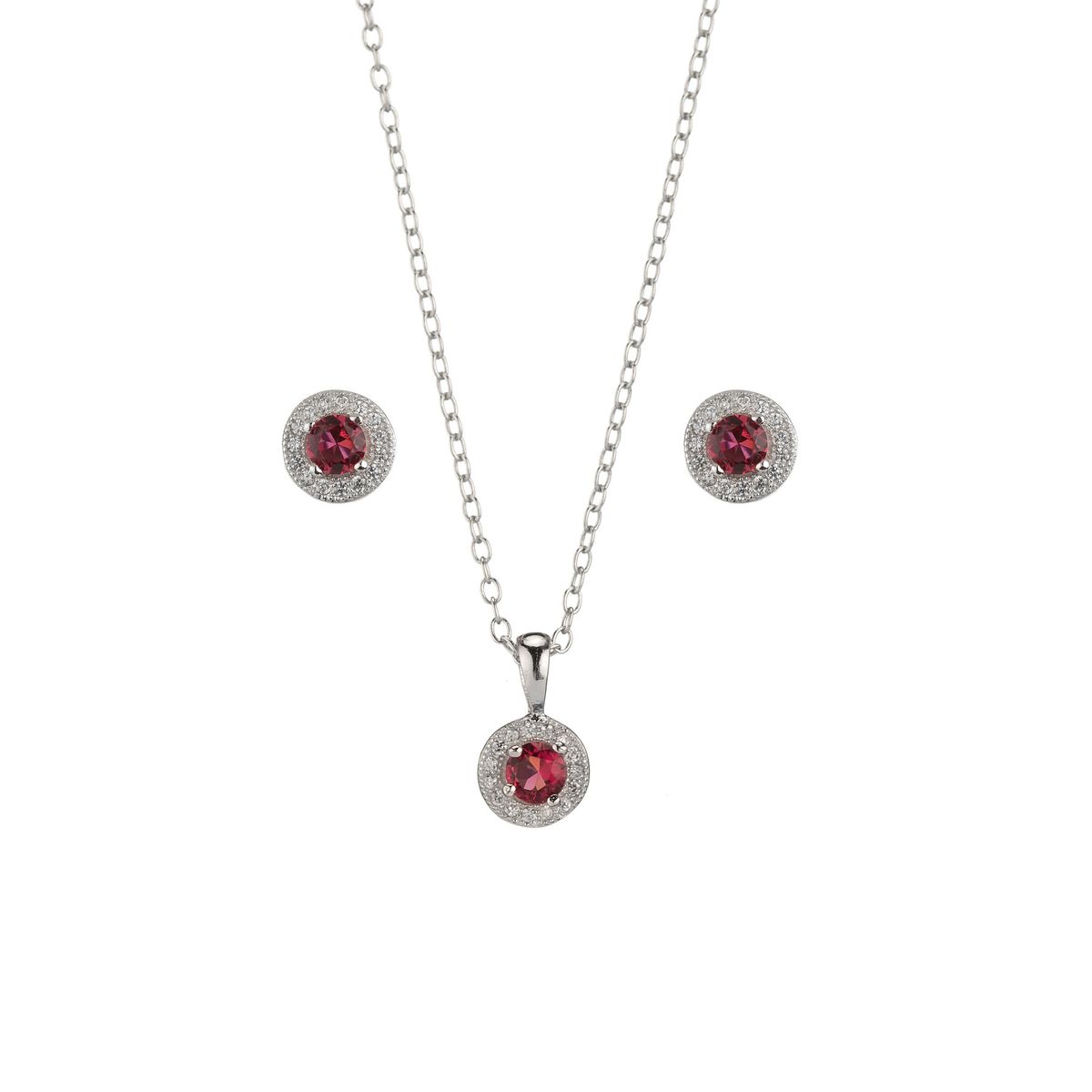Set Colgante - Pendientes Plata 7,5mm SEC0005RHZR Circonita Roja